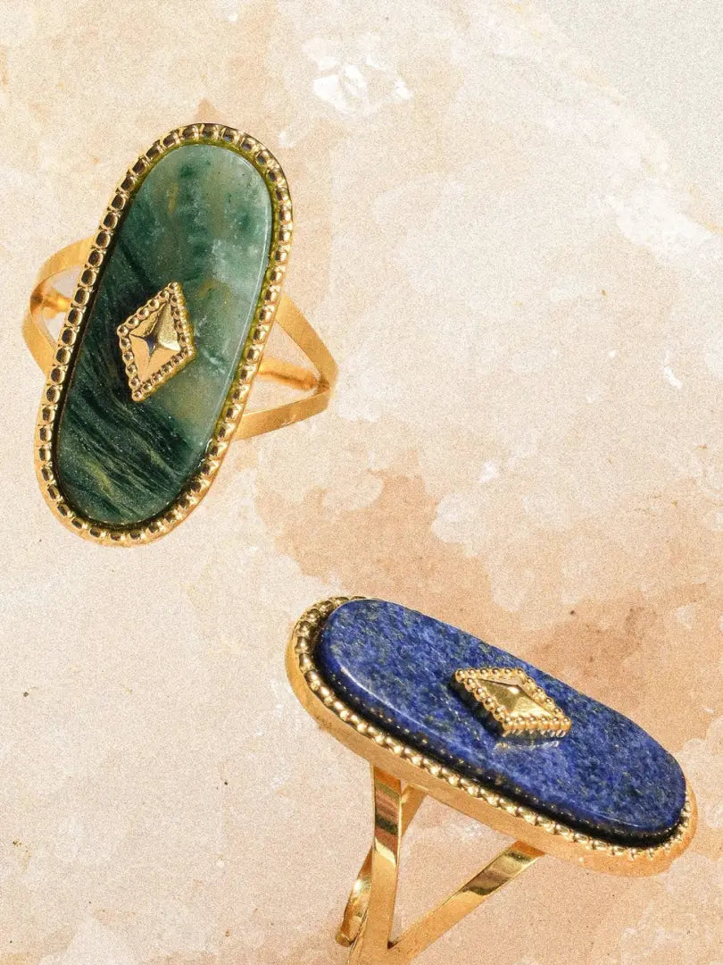 A bold fusion of natural stone beauty and modern elegance — the Aurora Stone Ring brings color, confidence, and charm to every look.